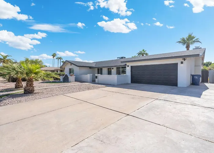 Appartement Central Tempe Gem Mural Art Garage Near Freeway de 204 m^2 est à moins de 4 km du Stade Sun Devil Stadium, ce qui permet d'accéder à de nombreux sites dans la région. De plus, l'accès à une piscine garantit aux clients un séjour relaxant.